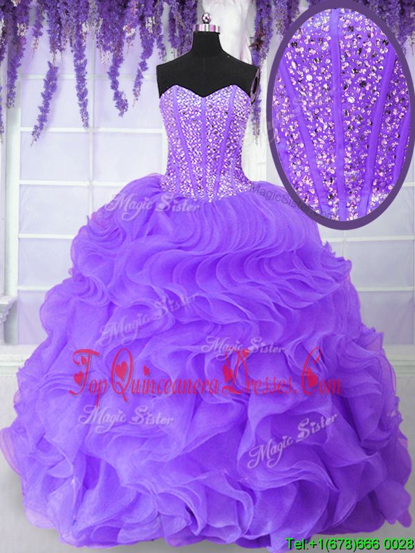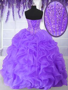 Clearance Sleeveless Floor Length Beading and Ruffles Lace Up Sweet 16 Dress with Purple