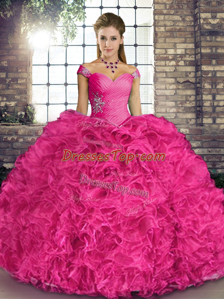 Clearance Sleeveless Lace Up Floor Length Beading and Ruffles Ball Gown Prom Dress