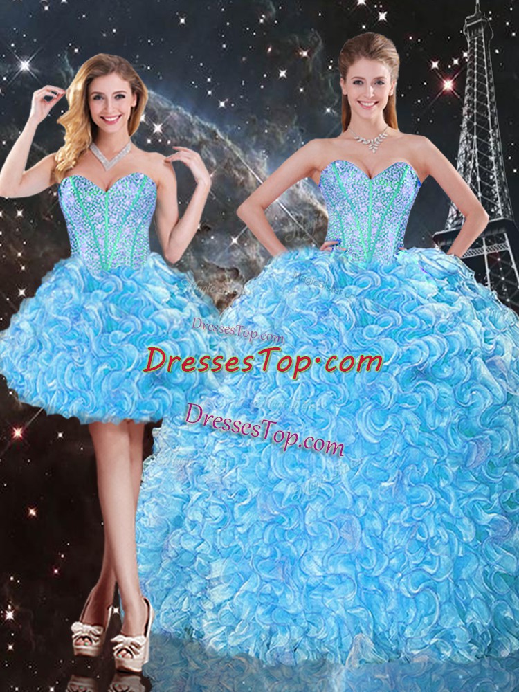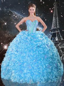 Clearance Sleeveless Organza Floor Length Lace Up Quinceanera Dress in Baby Blue with Beading and Ruffles