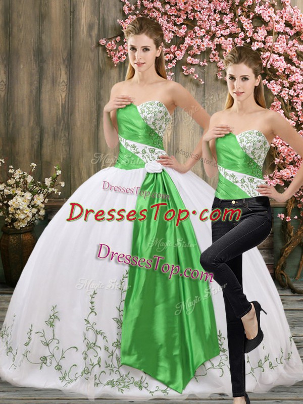 Clearance Sweetheart Sleeveless Ball Gown Prom Dress Floor Length Embroidery and Belt White Organza