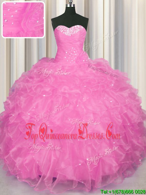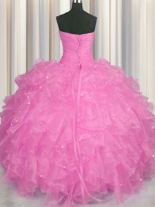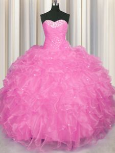 Clearance Sweetheart Sleeveless Lace Up Quinceanera Dresses Rose Pink Organza