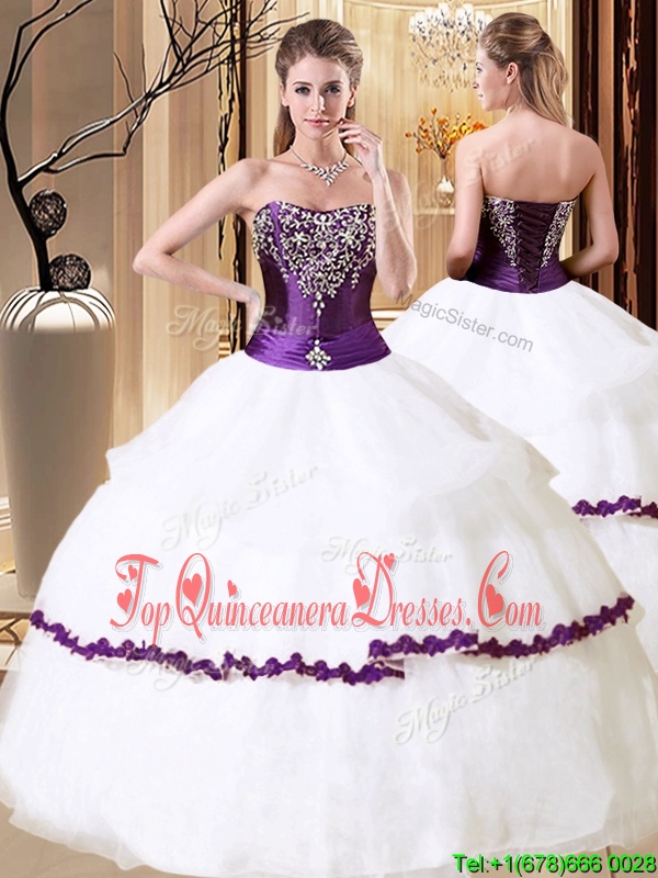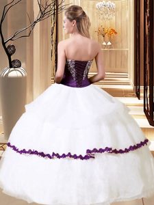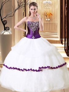 Clearance White Organza Lace Up Quince Ball Gowns Sleeveless Floor Length Beading