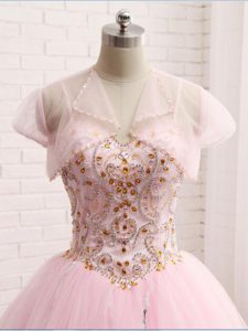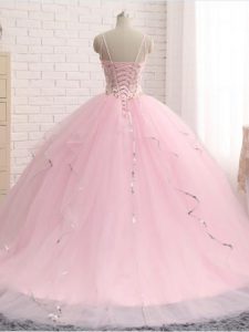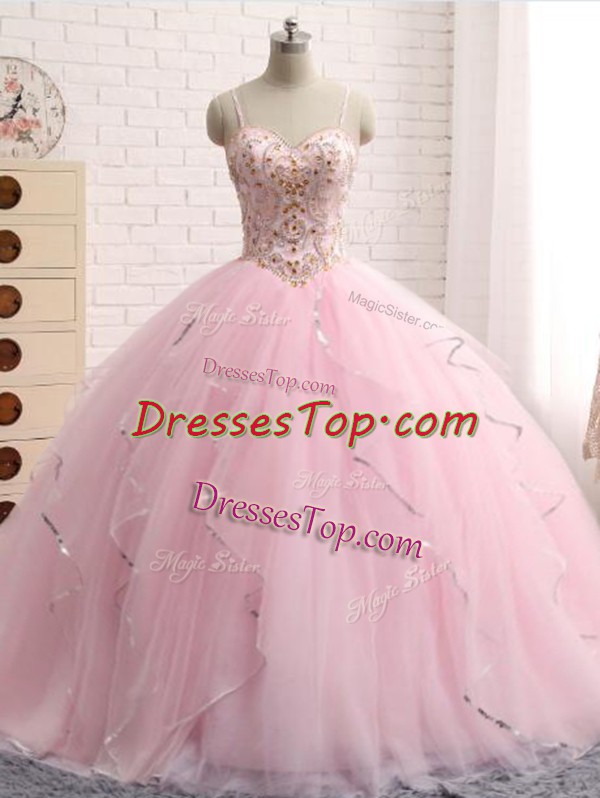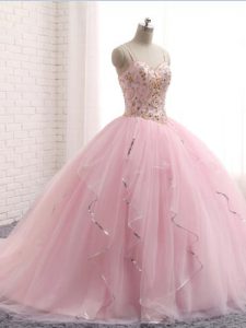 Colorful Beading and Ruffles 15 Quinceanera Dress Baby Pink Lace Up Sleeveless Brush Train