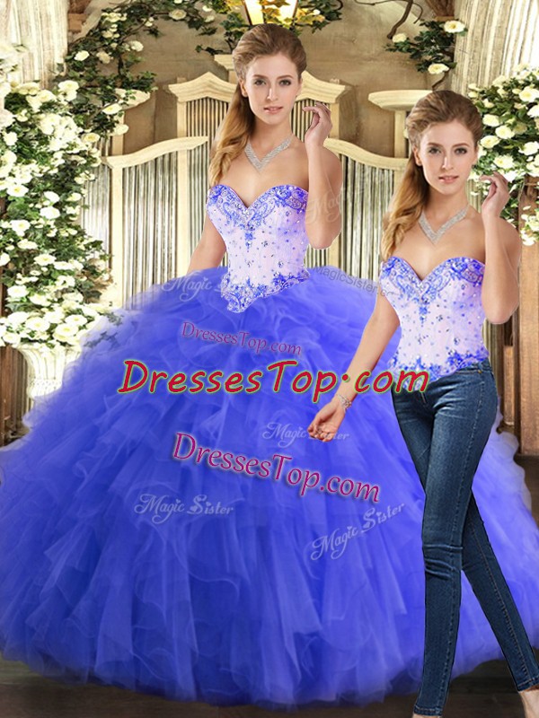 Colorful Blue Two Pieces Sweetheart Sleeveless Organza Floor Length Lace Up Beading and Ruffles Vestidos de Quinceanera