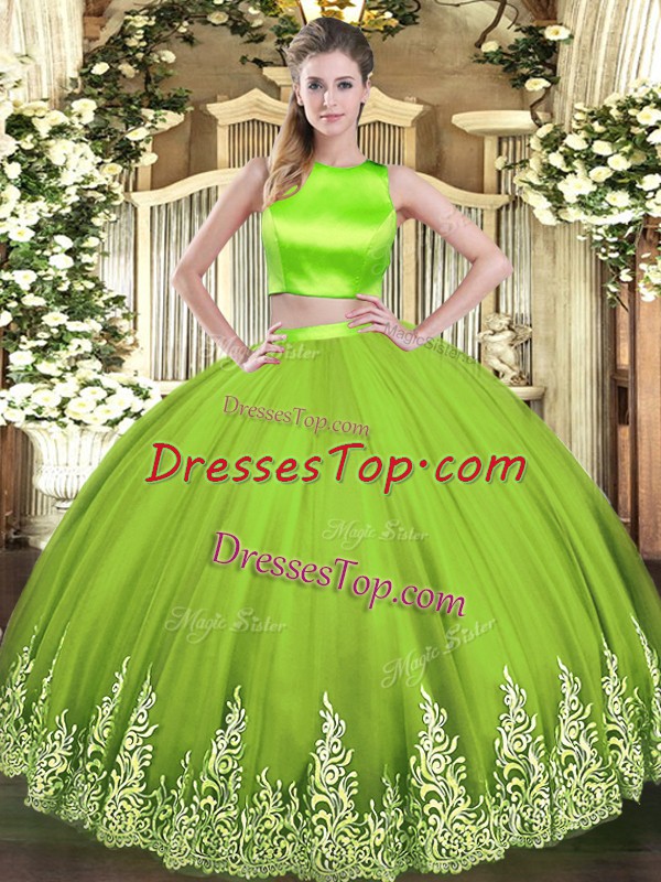 Colorful Floor Length Yellow Green Quinceanera Gown Tulle Sleeveless Appliques