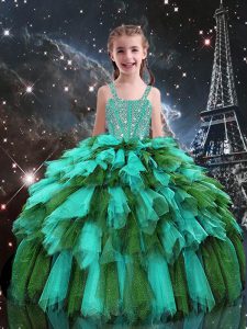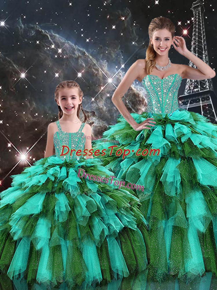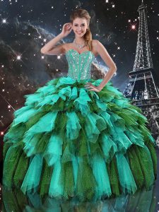Colorful Multi-color Ball Gowns Beading and Ruffles and Ruffled Layers Quinceanera Dress Lace Up Organza Sleeveless Floor Length