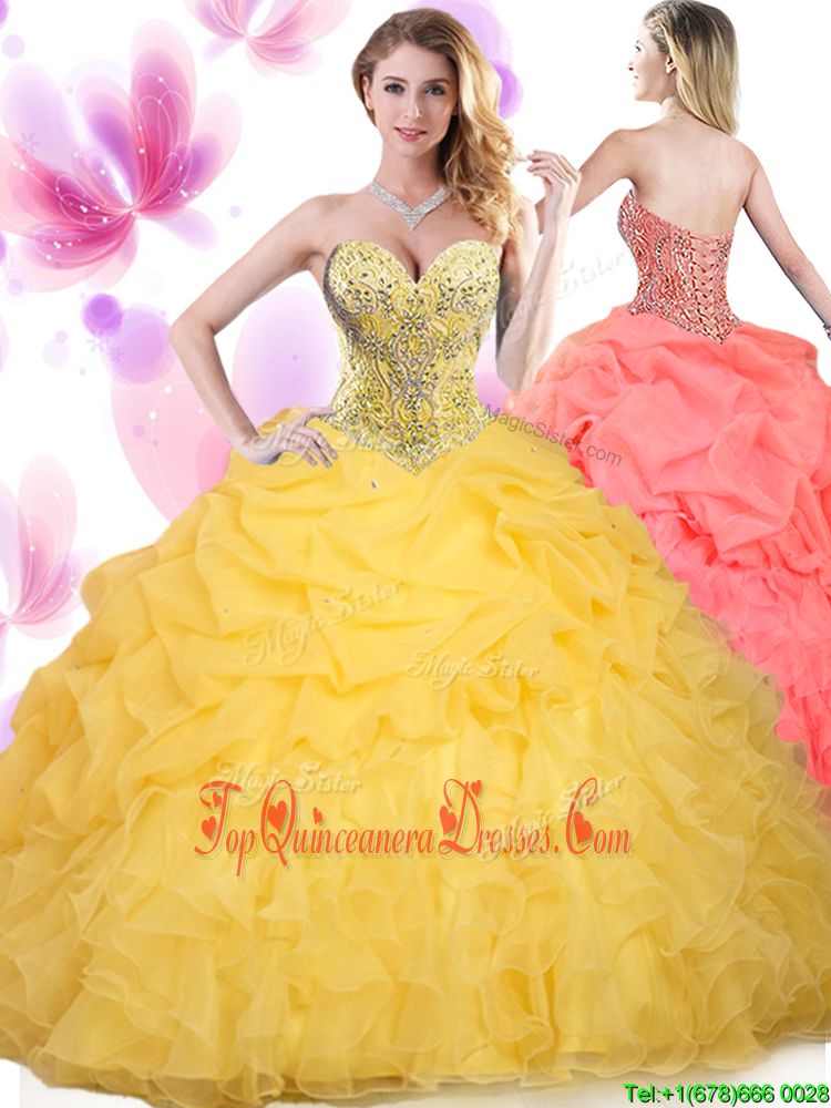 Colorful Orange Red Lace Up Quince Ball Gowns Beading Sleeveless Floor Length
