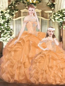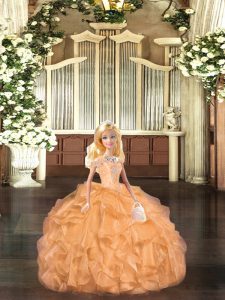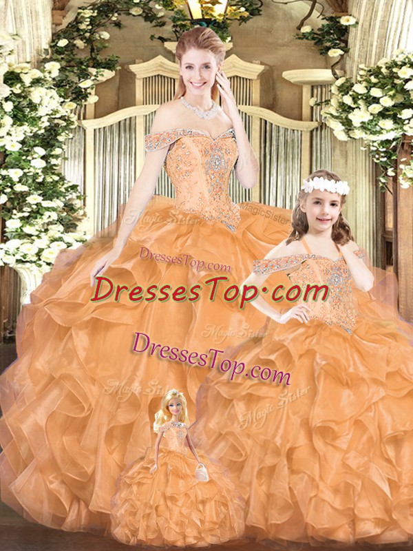 Colorful Orange Red Tulle Lace Up Vestidos de Quinceanera Sleeveless Floor Length Beading and Ruffles