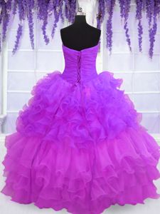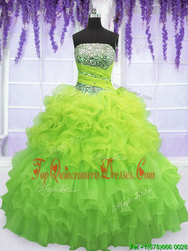 Colorful Organza Lace Up Quinceanera Dresses Sleeveless Floor Length Beading and Ruffled Layers and Pick Ups