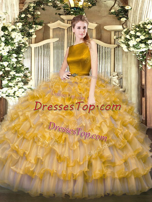 Colorful Scoop Sleeveless Organza Sweet 16 Dresses Ruffled Layers Clasp Handle