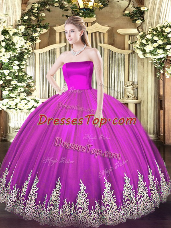 Colorful Sleeveless Appliques Zipper 15th Birthday Dress