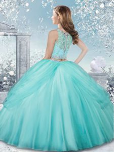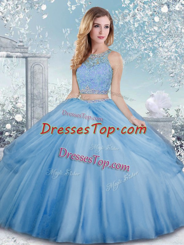 Colorful Sleeveless Floor Length Beading Clasp Handle Vestidos de Quinceanera with Baby Blue