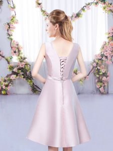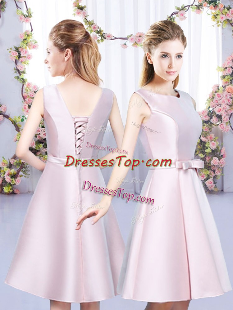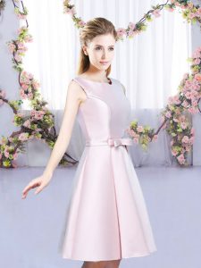 Colorful Sleeveless Satin Mini Length Lace Up Court Dresses for Sweet 16 in Baby Pink with Bowknot