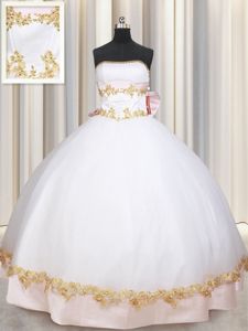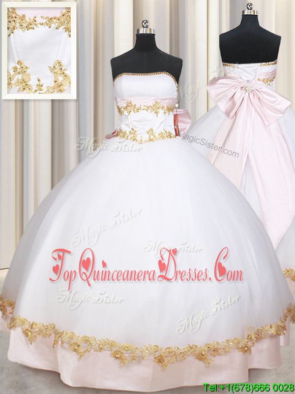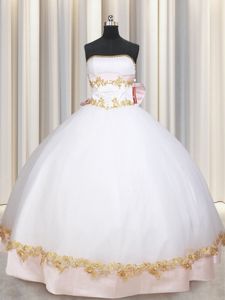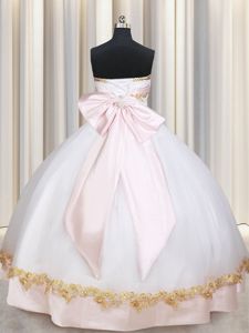 Colorful White Satin Lace Up Quinceanera Dress Sleeveless Floor Length Beading and Appliques and Bowknot