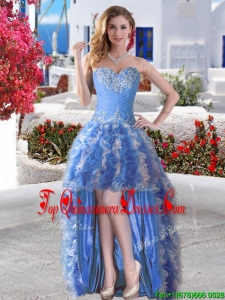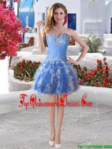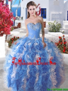 Comfortable Applique and Ruffled Detachable Quinceanera Dresses in Blue and White