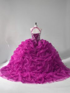 Comfortable Ball Gowns Sleeveless Fuchsia Quinceanera Gowns Lace Up