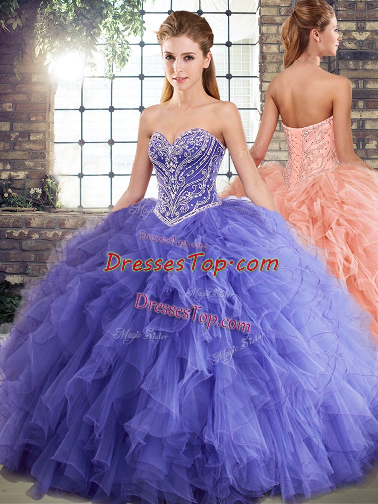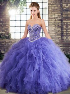Comfortable Beading and Ruffles Quinceanera Dresses Lavender Lace Up Sleeveless Floor Length