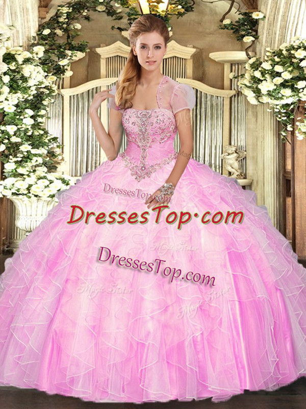 Comfortable Floor Length Ball Gowns Sleeveless Rose Pink Sweet 16 Dresses Lace Up