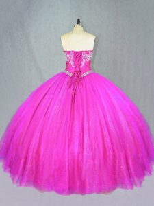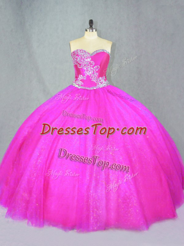 Comfortable Floor Length Fuchsia Sweet 16 Quinceanera Dress Tulle Sleeveless Beading
