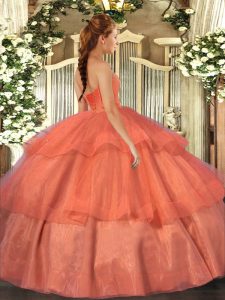 Comfortable Floor Length Lace Up Quinceanera Dresses Orange for Military Ball and Sweet 16 and Quinceanera with Beading and Ruffled Layers