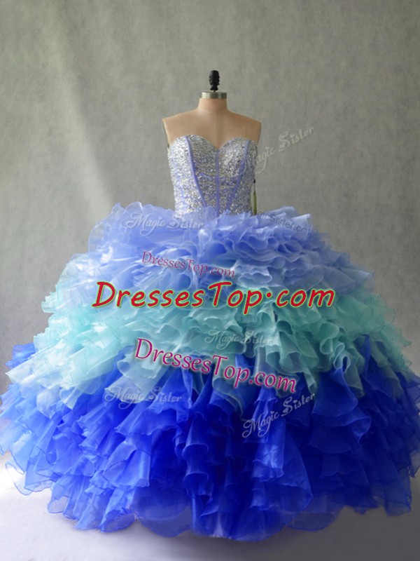 Comfortable Multi-color Sweet 16 Quinceanera Dress Sweet 16 and Quinceanera with Beading and Ruffles Sweetheart Sleeveless Lace Up