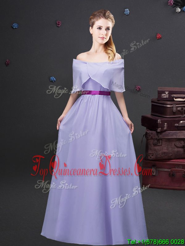 Comfortable Off the Shoulder Lavender Half Sleeves Chiffon Zipper Damas Dress for Prom and Party and Wedding Party