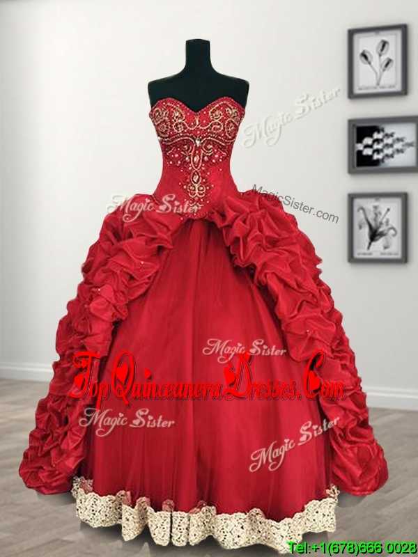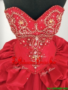 Comfortable Red Big Puffy Quinceanera Dress with Beading and Pick Ups