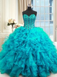 Comfortable Red Lace Up Quinceanera Dresses Beading and Ruffles Sleeveless With Brush Train