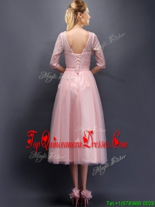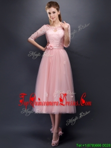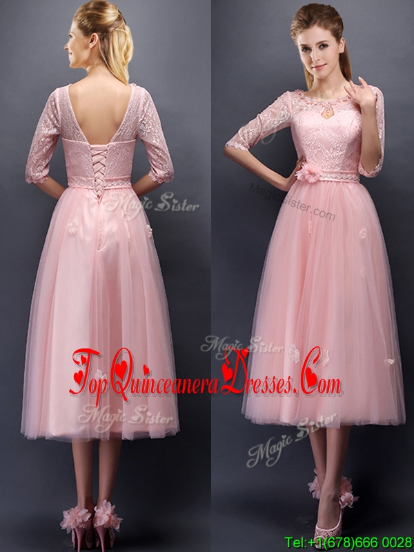 Comfortable Scoop Half Sleeves Quinceanera Dama Dress with Hand Made Flowers and Appliques