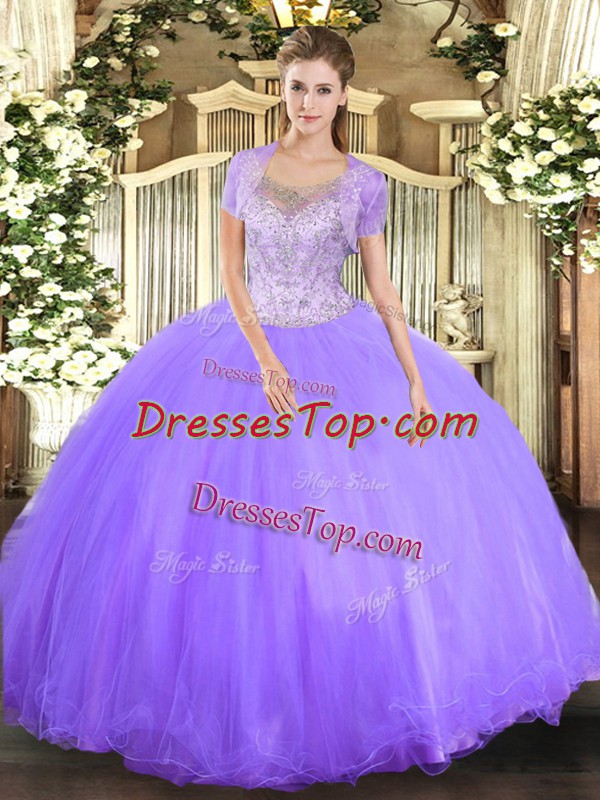 Comfortable Sleeveless Floor Length Beading Clasp Handle Quinceanera Gown with Lavender