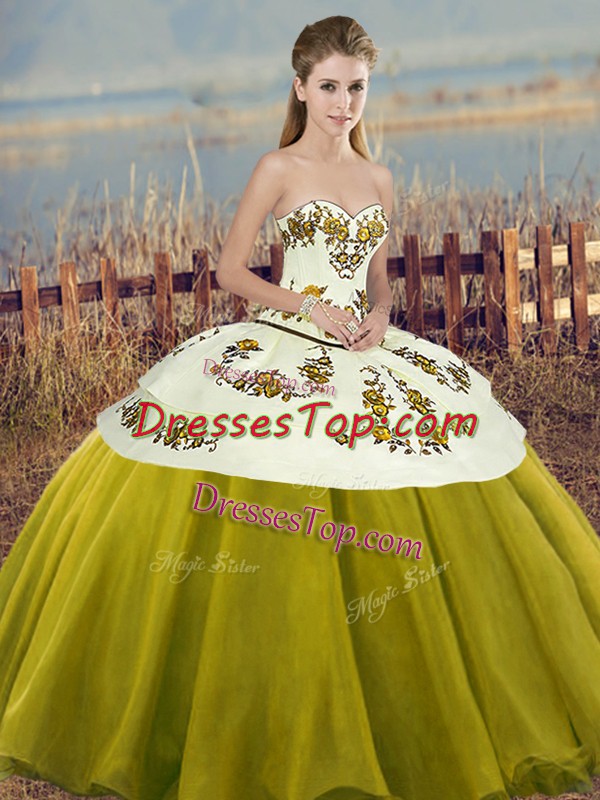Comfortable Sleeveless Lace Up Floor Length Embroidery and Bowknot Ball Gown Prom Dress