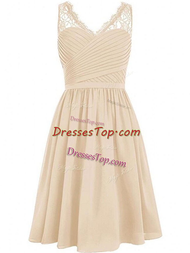 Comfortable Sleeveless Side Zipper Knee Length Lace and Ruching Damas Dress
