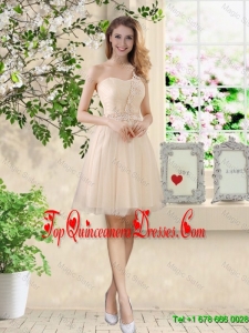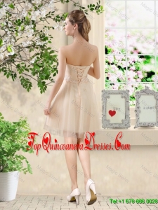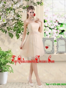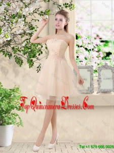 Comfortable Strapless Champagne Dama Dresses with Knee Length