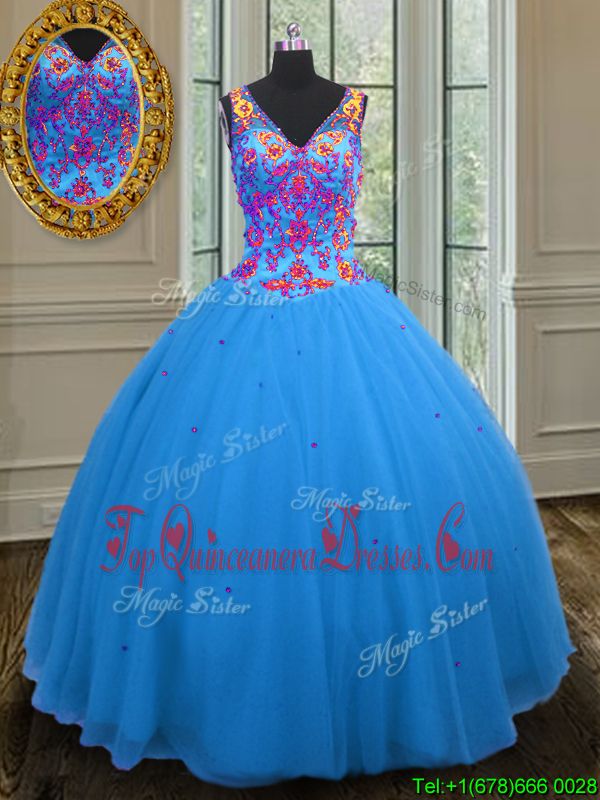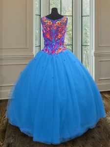 Comfortable Straps Straps Blue Zipper 15th Birthday Dress Beading and Sequins Sleeveless Floor Length