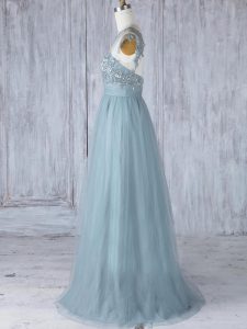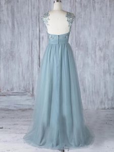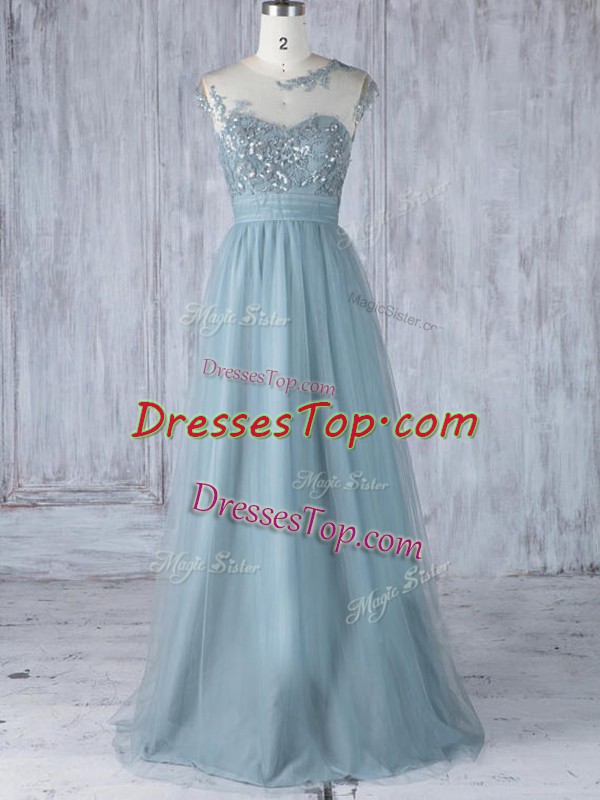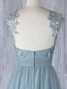 Comfortable Tulle Scoop Cap Sleeves Zipper Appliques Court Dresses for Sweet 16 in Grey