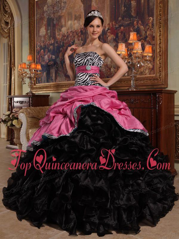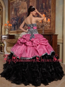 Coral Red and Black Ball Gown Sweetheart Floor-length Pick-ups Taffeta and Organza Perfect Quinceanera Dress