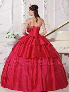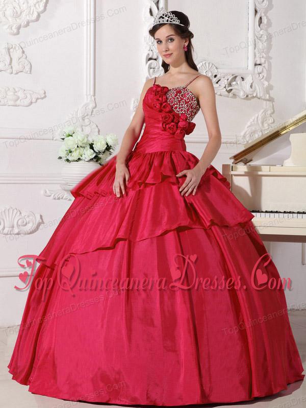 Coral Red Ball Gown Straps Floor-length Taffeta Beading Fashionable Quinceanera Dress