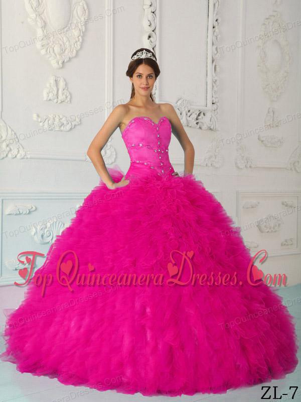 Coral Red Ball Gown Sweetheart Floor-length Satin and Organza Beading Quinceanera Dress
