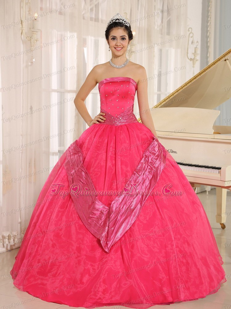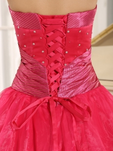 Coral Red Beading 2013 Quinceanera Gowns Strapless Sweet