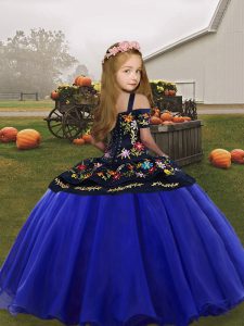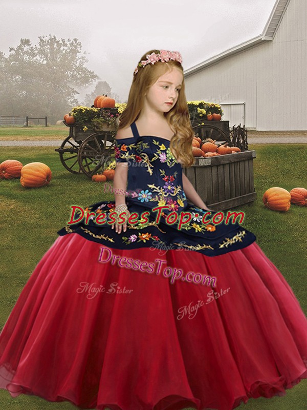 Coral Red Organza Lace Up Straps Sleeveless Floor Length Little Girls Pageant Dress Wholesale Embroidery