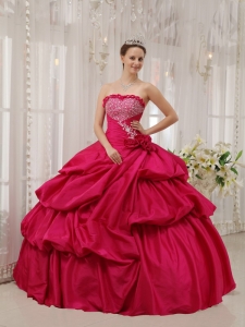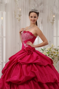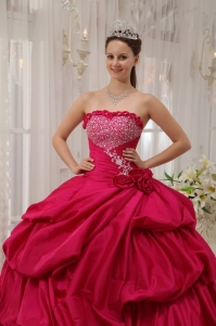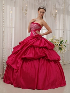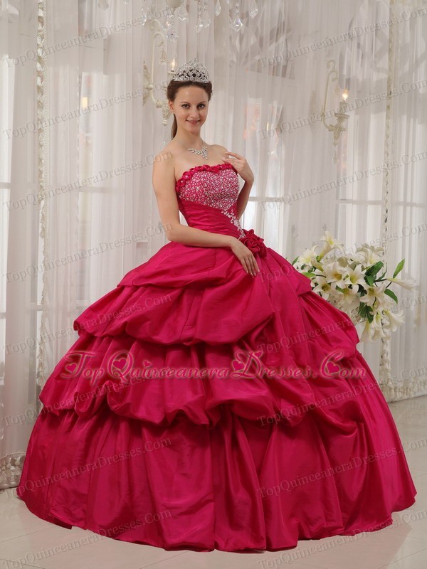 Coral Red Quinceanera Dress Strapless Beading Ball Gown