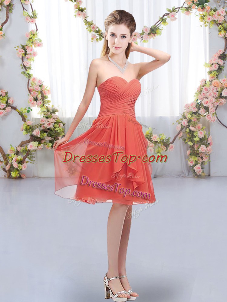 Coral Red Sweetheart Neckline Ruffles and Ruching Vestidos de Damas Sleeveless Lace Up