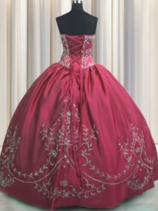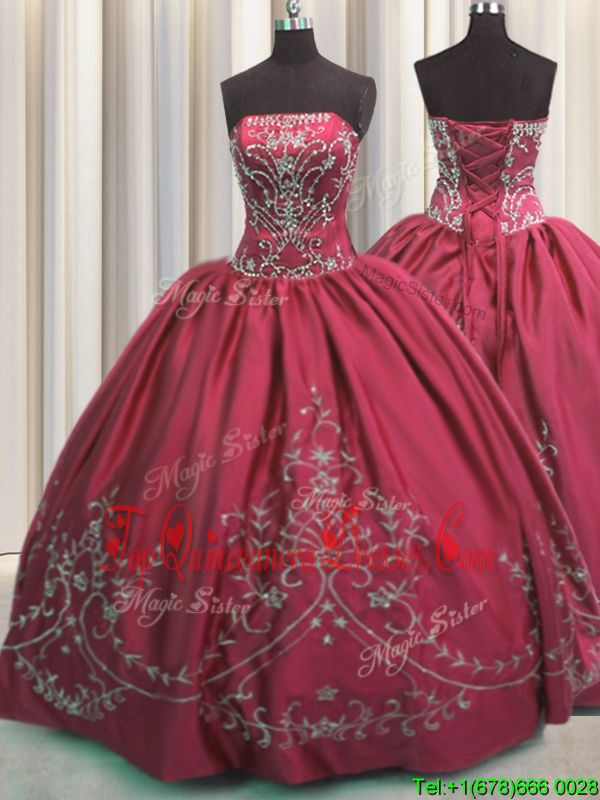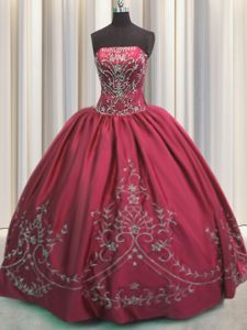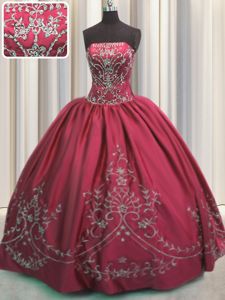 Coral Red Vestidos de Quinceanera Military Ball and Sweet 16 and Quinceanera and For with Beading and Embroidery Strapless Sleeveless Lace Up