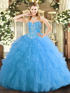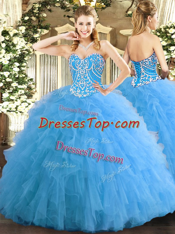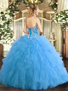 Custom Design Aqua Blue 15th Birthday Dress Military Ball and Sweet 16 and Quinceanera with Beading and Ruffles Sweetheart Sleeveless Lace Up
