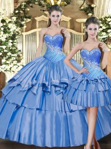 Custom Design Baby Blue Ball Gowns Beading and Ruffled Layers 15 Quinceanera Dress Lace Up Tulle Sleeveless Floor Length