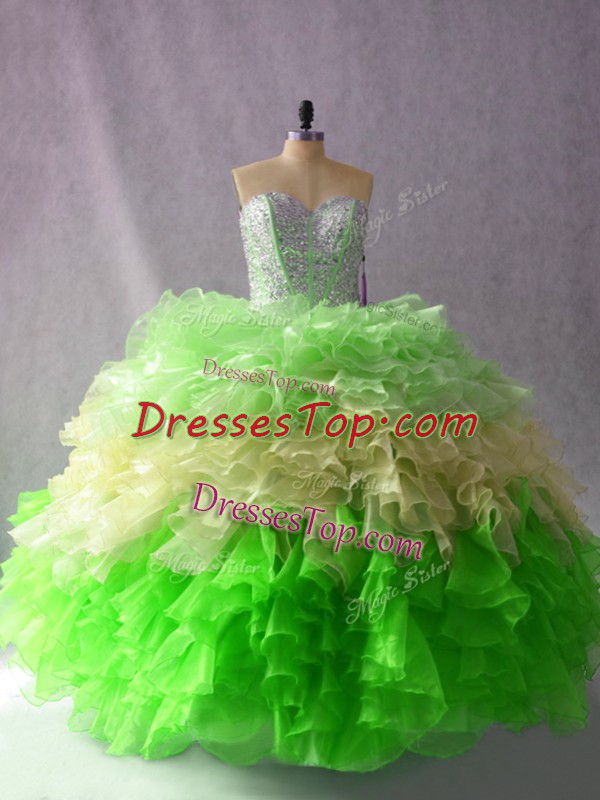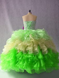 Custom Design Beading and Ruffles Quinceanera Dress Multi-color Lace Up Sleeveless Floor Length