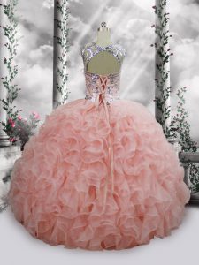 Custom Design Floor Length Ball Gowns Sleeveless Baby Pink 15th Birthday Dress Lace Up
