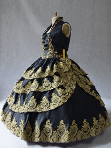 Custom Design Floor Length Black Quinceanera Dress Sweetheart Sleeveless Lace Up