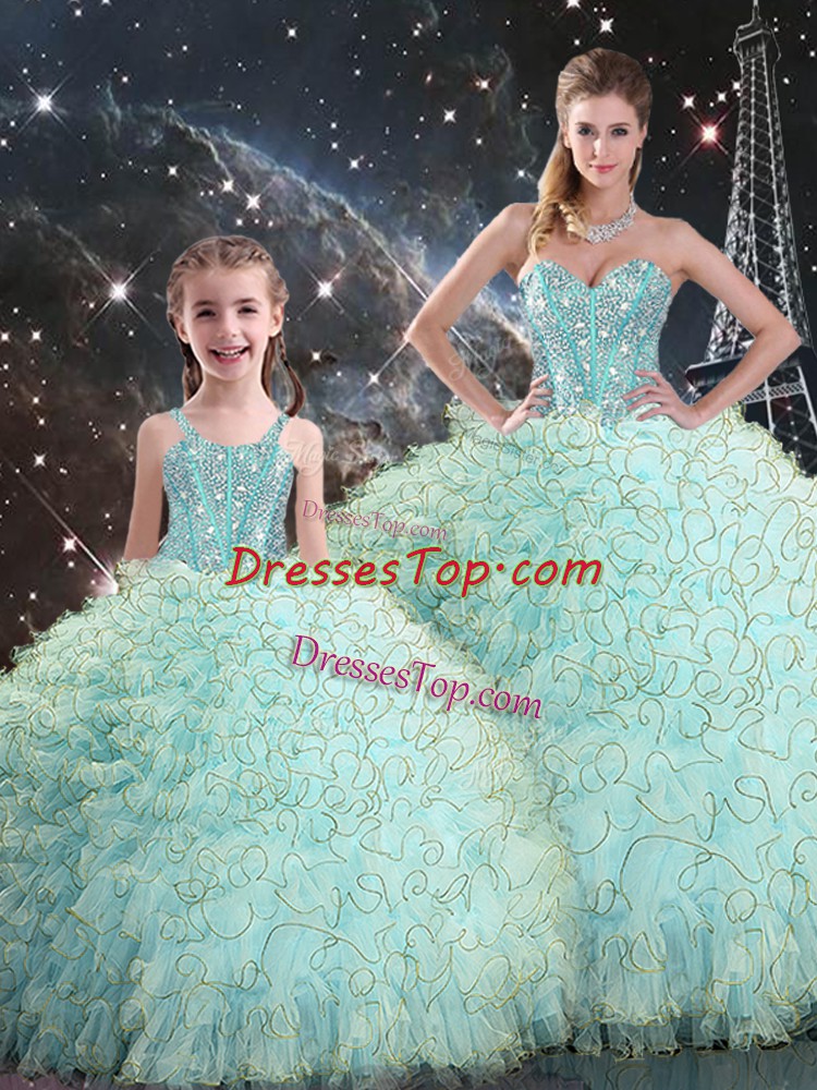 Custom Design Floor Length Light Blue 15 Quinceanera Dress Organza Sleeveless Beading and Ruffles