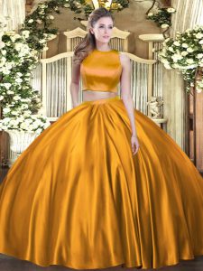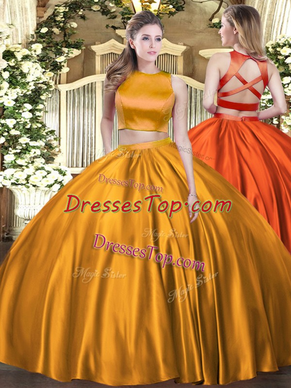 Custom Design Floor Length Orange Quinceanera Dress High-neck Sleeveless Criss Cross
